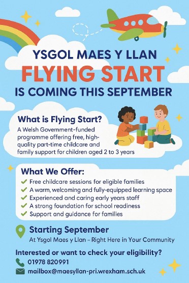 We are excited to announce that from September 2025 Flying Start will be available at Ysgol Maes-Y-Llan.